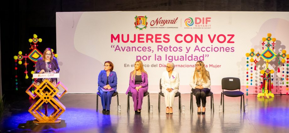 La presidenta del Sistema DIF Nayarit, doctora Beatriz Estrada Martínez, encabezó el evento Mujeres con Voz: “Avances, Retos y Acciones por la Igualdad”, que marca el inicio de las actividades con motivo del Día Internacional de la Mujer. Durante el acto celebrado en el Teatro del IMSS de Tepic, se destacó la importancia de continuar impulsando acciones que permitan a las mujeres ejercer sus derechos en igualdad de condiciones, y acceder a mejores oportunidades de crecimiento y bienestar.